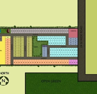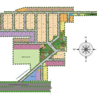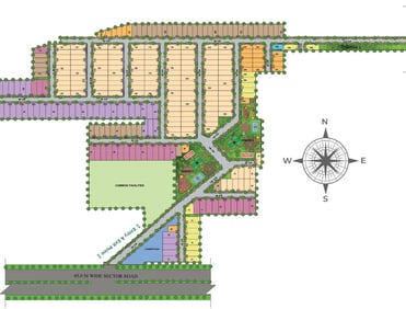 A large 16.5-acre township featuring modern plotting layout, offering 100 to 170 sq. yard plots at ₹60,000/sq. yard.